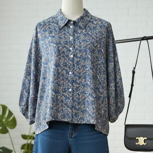 |CDH42A5|여성용 꽃무늬 내추럴 블라우스