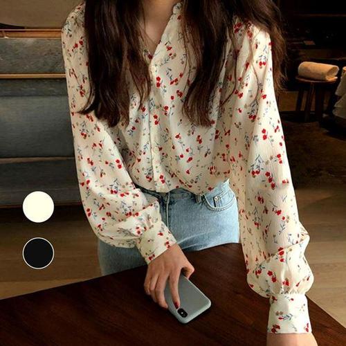 [오너클랜]인기상품 러블리 쉬폰 꽃무늬 블라우스 퍼프 긴팔 봄가을 [WB8A3BD_250917]