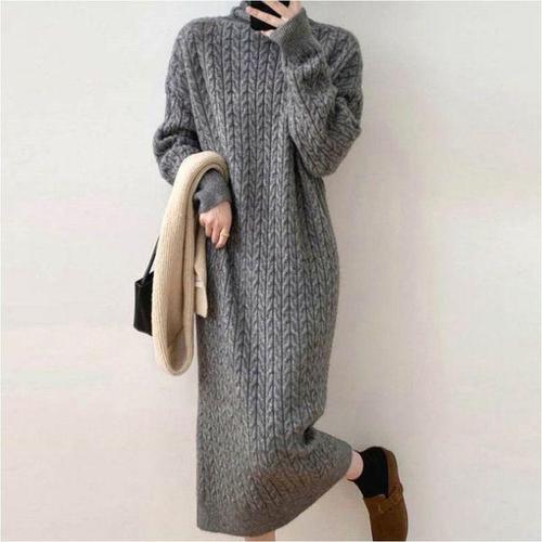 [에이치플러스몰]여성 목폴라 하이넥 꽈배기 니트 롱원피스 폴라 골지 겨울 4색