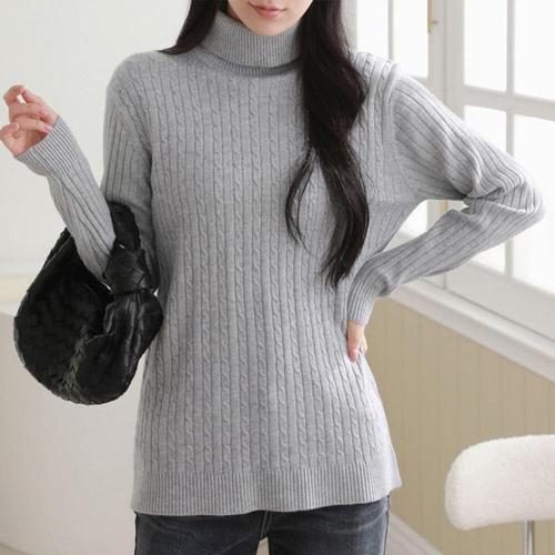 더벨러리 여성 터틀넥 꽈배기 니트 BKN4594 두꺼운 목폴라 스웨터