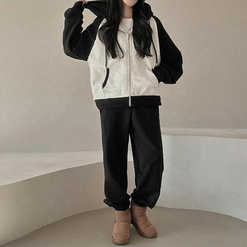 [유야]99까지 기모 면 배색 나그랑 후드티 카고 롱 스커트 트레이닝 세트 츄리닝 셋업 -SST0109H- 빅사이..