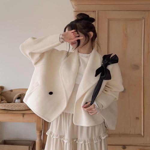 [엘루이즈][엘루이즈] 베니아 핀턱 소매 빅카라 나그랑 하프 코트(5color)