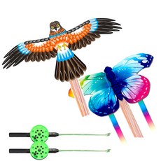 어린이를위한 1 세트 만화 나비 & 독수리 연 - 손잡이가있는 164ft/50m 문자열 - 어린이를위한 여름 야외 비행 연 장난감