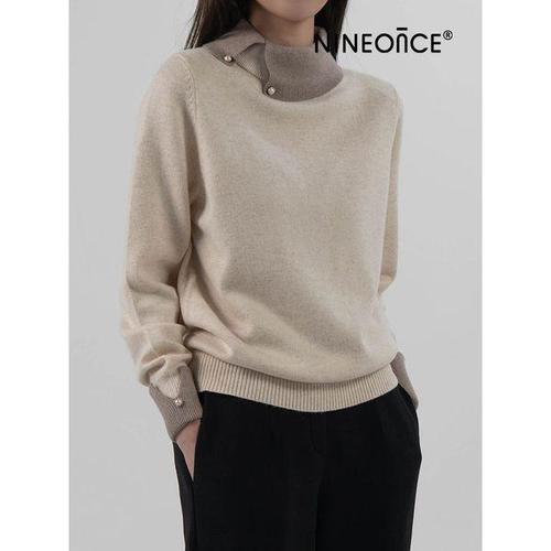 [나인온스]여성 라운드넥 카라 M-진주카라니트