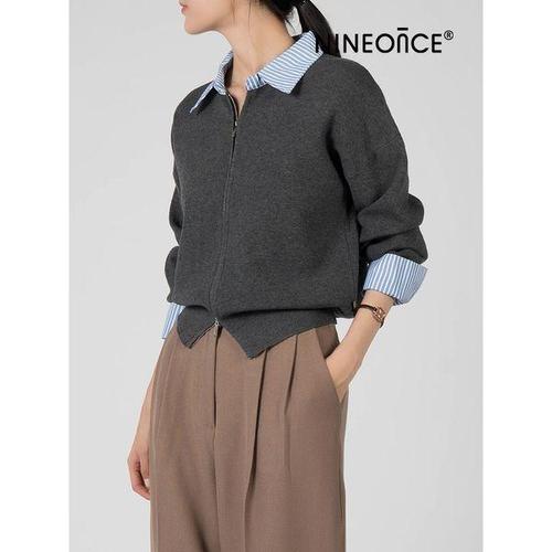 [나인온스]셔츠레이어드 카라집업가디건