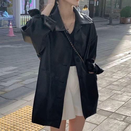 [셀러허브_여성트랜드패션]여성코트 데일리룩 여유핏 여성가죽코트 5컬러 롱코트 여친룩