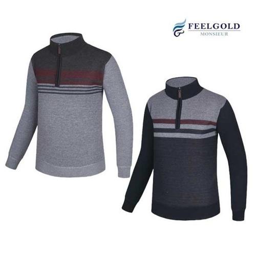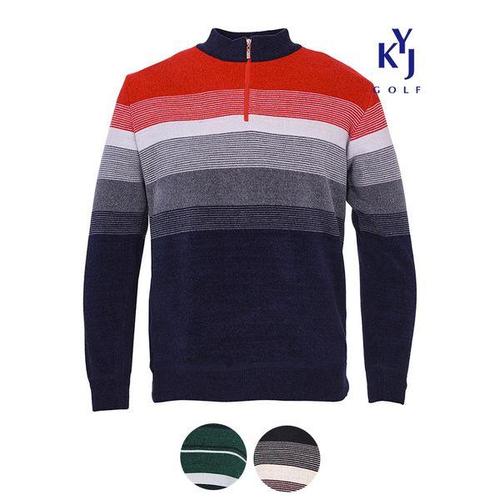 [김영주골프]겨울 두툼 기모 스트라이프 남성 골프 반집업 니트 DOWMNT31