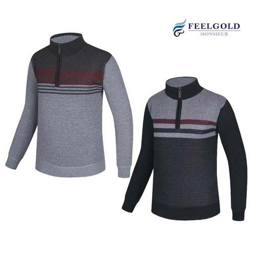 골피아 RM25W437 남성 반집업 라인 배색 기모 긴팔 니트 스웨터