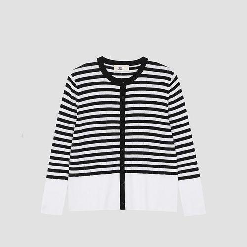[유닛]코튼 블렌드 크루넥 스트라이프 니트 가디건 [UFJKCA25GN-WHITE]