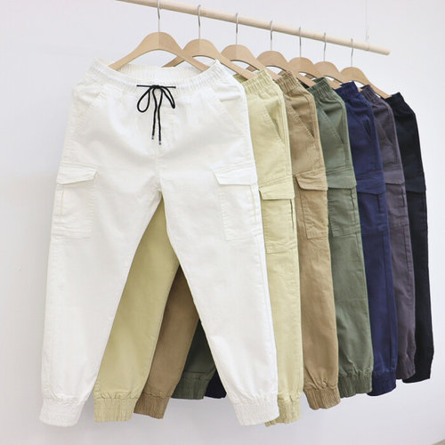 S-4XL 빅사이즈 밴딩 스판 카고바지 남성 여름 면 작업복 바지 건빵 밴드 봄 여름 가을 겨울 포켓 면