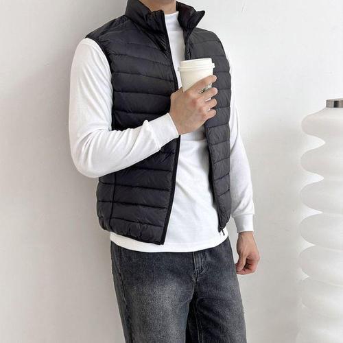 [라일리] Rly 겨울 베이직 데일리 남자 패딩조끼 보온 하이넥 경량