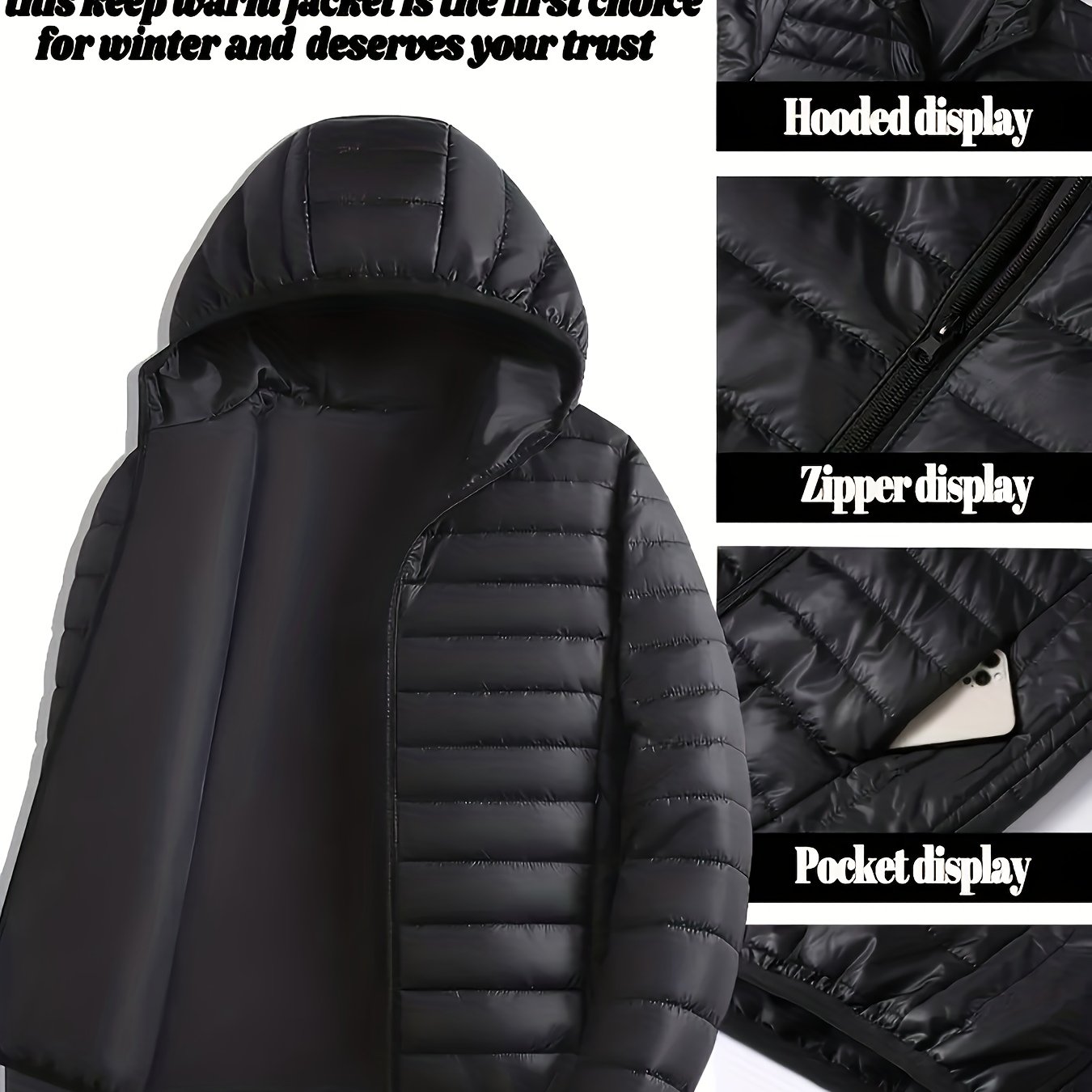 TEMU 남성 가을 겨울 캐주얼 따뜻한 후드 자켓, 캐주얼 지퍼 따뜻한 퀼팅 인조 다운 코트, 편안하고 패셔너블한 아웃도어 의류, 야외 스포츠 및 피트니스에 적합