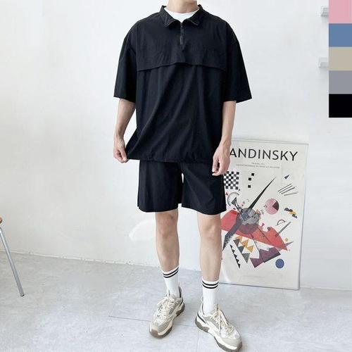 남성용 아노락 바람막이 반팔 집업 + 반바지 세트 T#YW1068