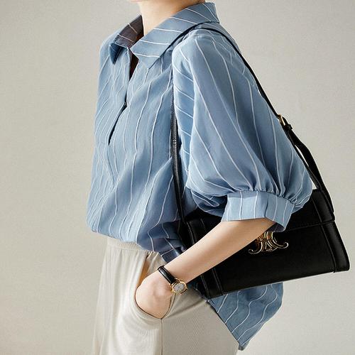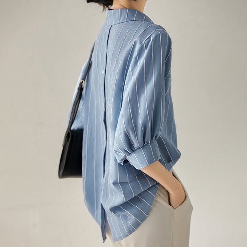 [BZJL8UBH_4C]투버튼 스타일 소매 스트라이프 셔츠 데