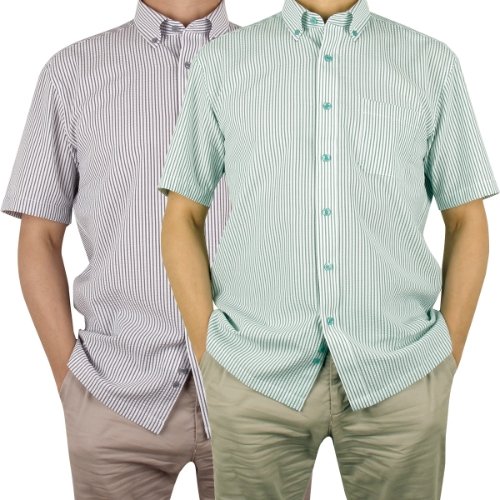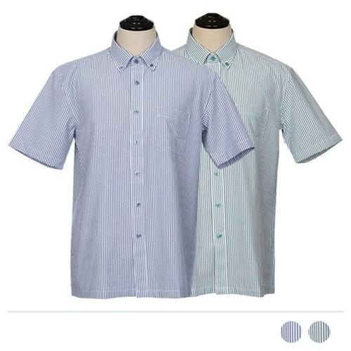 반소매 시어서커 버튼다운 스트라이프 네이비 그린 남자 캐주얼 남방셔츠