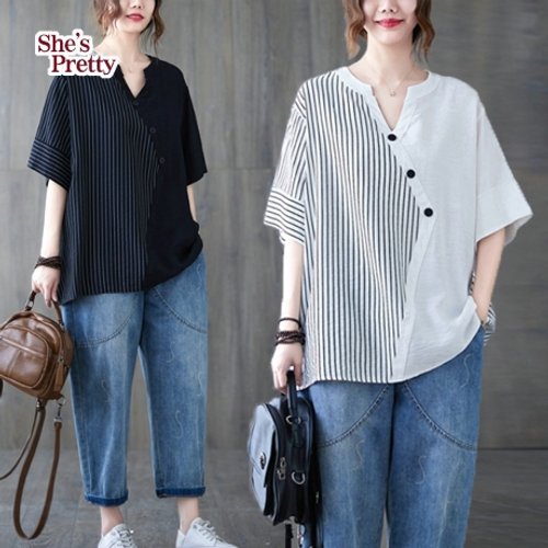 [쉬즈프리티] 앵클버튼스트라이프셔츠탑