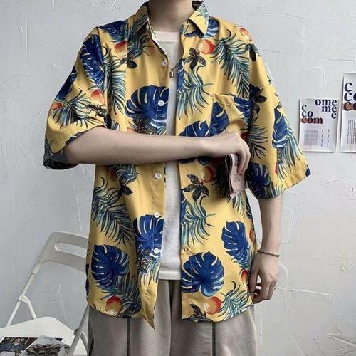 [에이치플러스몰]캐주얼 남자 데일리 셔츠 하와이안 클래식 플라워 커