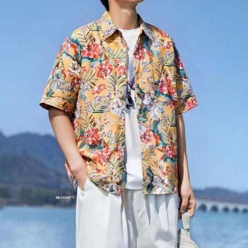 [에이치플러스몰]키밍 캐주얼 남자 하와이안 셔츠 플라워 커플 남방