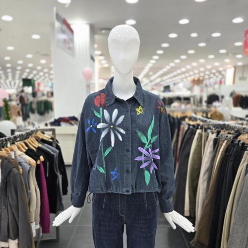 [벨라디터치]플라워 루즈핏 숏 데님 셔츠 V3F4BL23_GN