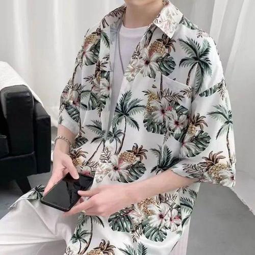 [에이치플러스몰]남자 인기 캐주얼 하와이안 셔츠 감성 플라워 커플