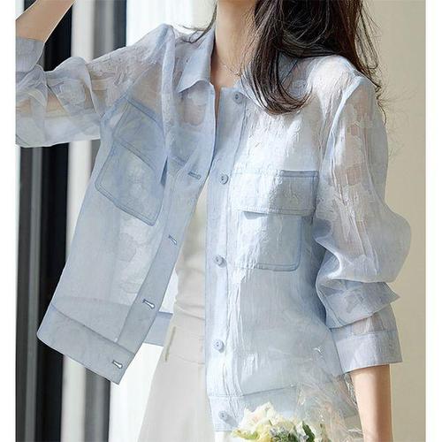 [패션시그널]시스루 플라워패턴 셔츠 자켓 DD0619