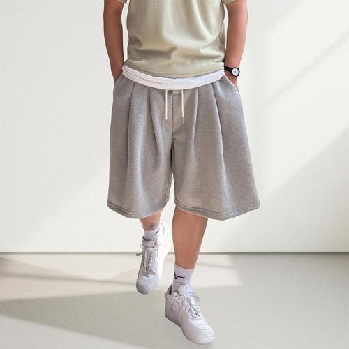 1+1 초경량 나일론 쇼츠 남성 원턱 와이드 7부반바지 데일리 헬스 런닝 하의 운동복