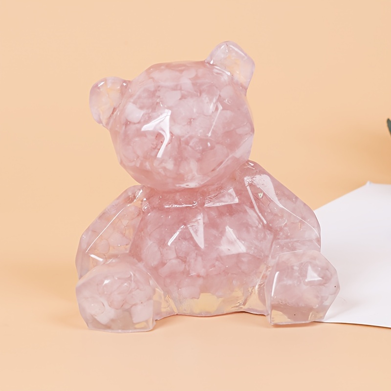 TEMU 스타일의 자연석 곰상 - 1개 손수 제작된 레진 곰상, 포켓 애완동물, 집 장식, 자동차 장식, 크리스마스와 할로윈을 위한 독특한 선물