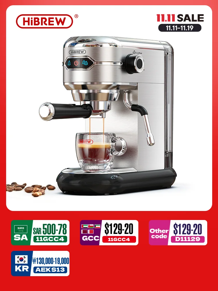 HiBREW 반자동 커피 메이커, 카페테라 20 바 이녹스, 초슬림 ESE 포드 및 파우더, 에스프레소 카푸치노 머신, 온수 H11