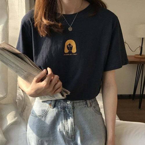 [셀럽하우스]여성 RFRQ4982 네이비색 반팔티 여름 오버핏 대학생 20대 학교