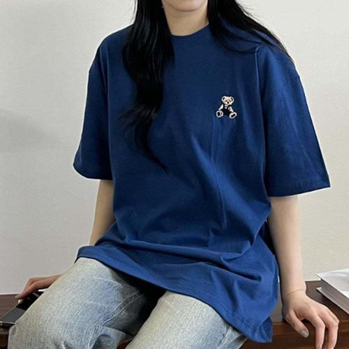 ( )여성 오버핏 순 면 여름 테디베어 반팔 티셔츠 네이비