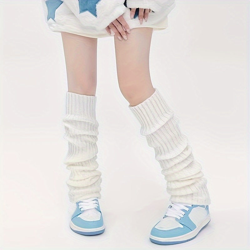 TEMU 1쌍 여성용 미끄럼방지 오버더니 소크스 - 부드러운 아크릴 겨울 보온 레그워머, 단색 캐주얼 다기능 종아리 길이 커버, 야외 활동용, 미끄럼 방지 신발, 텍스처 디자인, 계절별 레그웨어, 심플 스타일, 내구성 있는 소재, 패션 액세서리