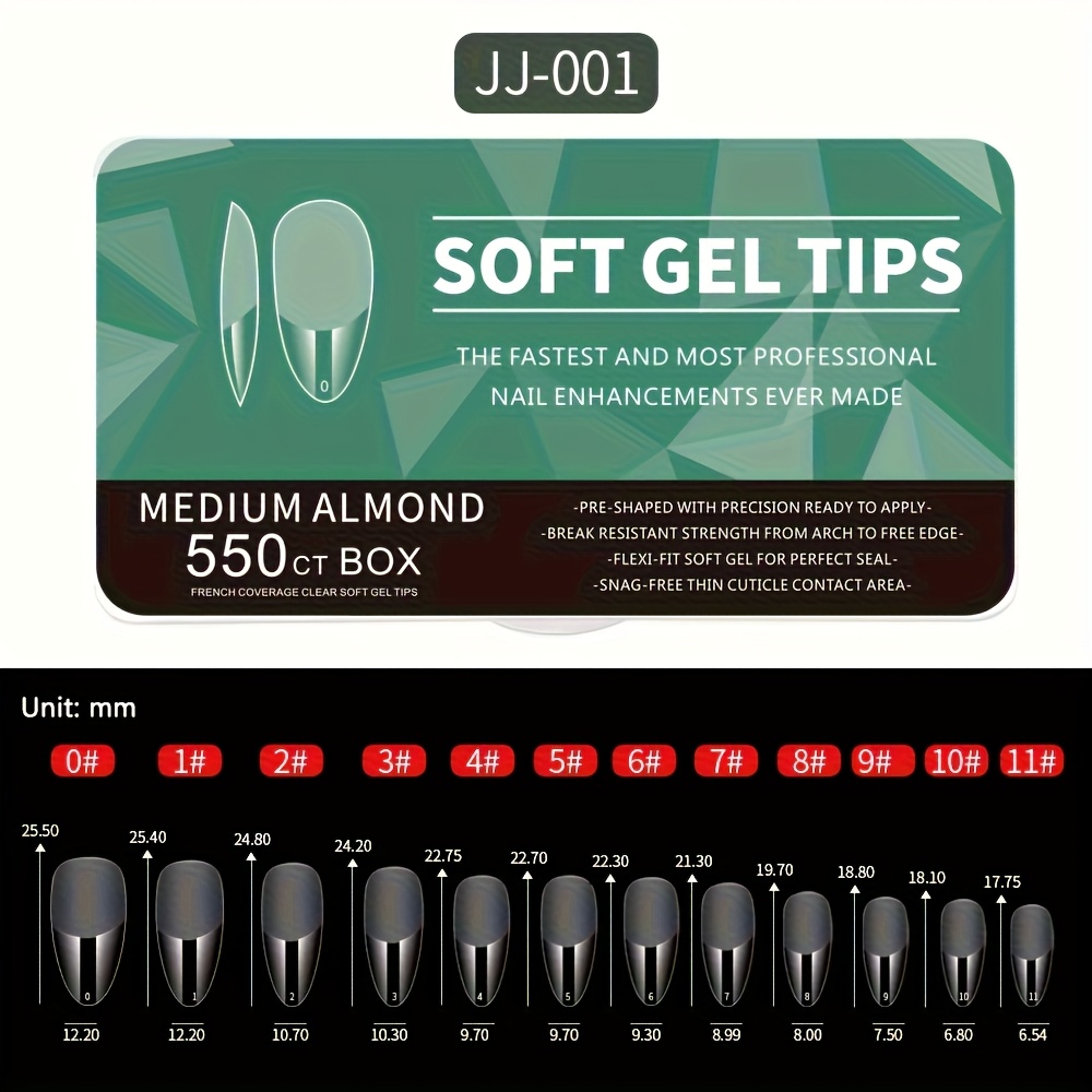 TEMU 550개 소프트 젤 풀 커버 네일 팁 - 아몬드 쉐이프 미디엄 길이 투명 무흔적 인조 손톱, 광택 유럽 스타일 프레스온 익스텐션, DIY 네일아트 & 살롱용, 전문가 강력 접착력, 매끄러운 마감, 뷰티 애호가를 위한 네일 액세서리