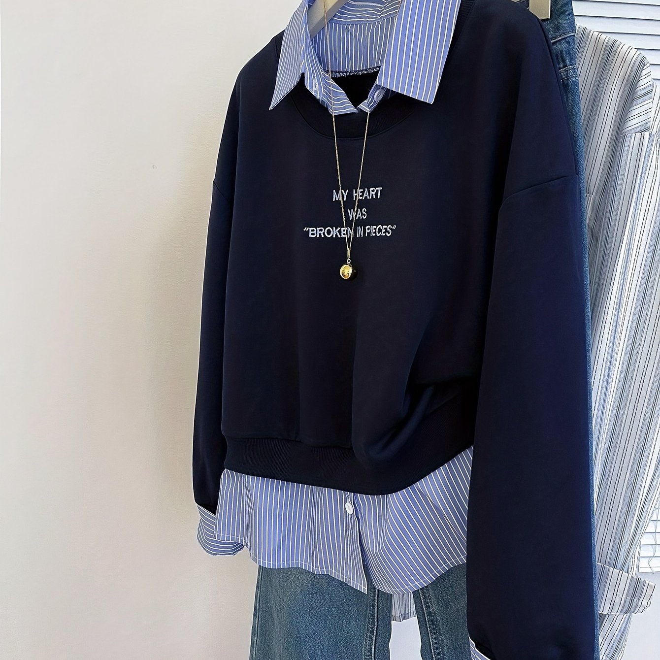 TEMU 여성용 캐주얼 투인원 긴팔 카라 스웨트셔츠, 루즈핏, 봄·가을 착용에 적합