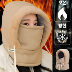 빅스테퍼 패딩 후드 워머 겨울 방한 플리스 넥워머 군밤 모자 스포츠 스키 남여공용, 1개, 베이지