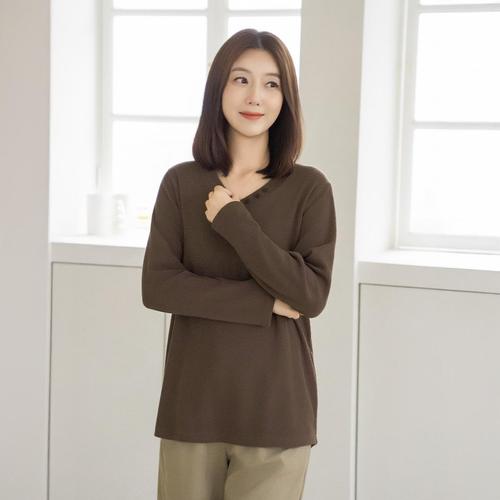 엄마옷 마담4060 브이넥버튼티셔츠-QTE2509040-