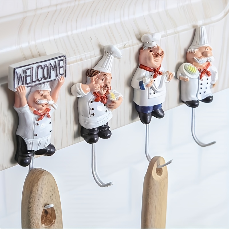 TEMU 창의적인 셰프 테마 후크 4개 세트, 귀여운 레진 후크, 부드러운 접착식, 주방과 욕실에 어울리는 컬러 추가, 완벽한 휴일 선물, 파리다비오