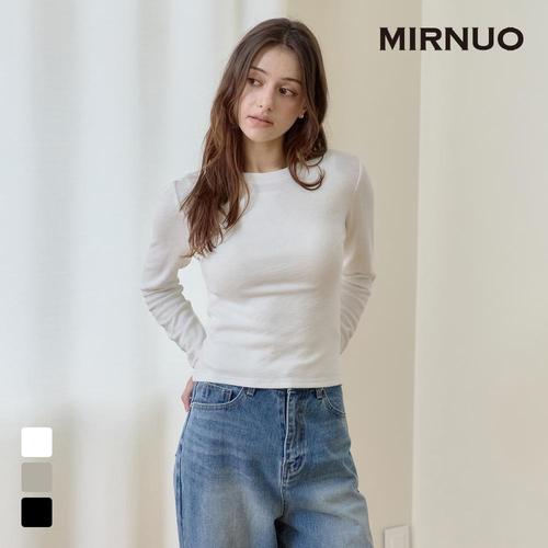 [미르누아]미르누아 니어 기모 라운드 긴팔 탑 무지 티셔츠