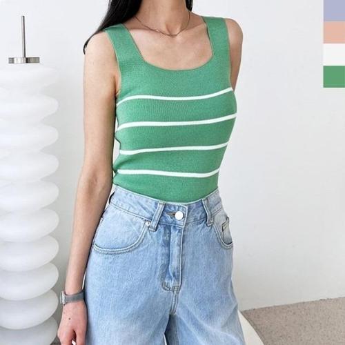[엄지척]여성 스퀘어넥 스트라이프 민소매 나시 니트_20388669_667501