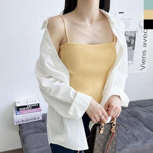 니트 심플 여성나시티 나시 뽀얌 끈 여자니트나시 베 WD7DB8B