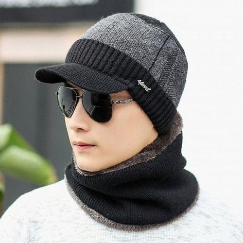 [에이치플러스몰]무드 니트선캡 넥워머 세트 겨울 방한모자 썬캡 워머