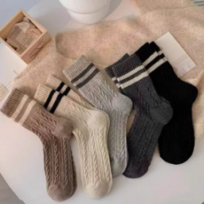 스트라이프 디자인 캐주얼 꽈배기 니트 패션 중목 양말 5종 세트