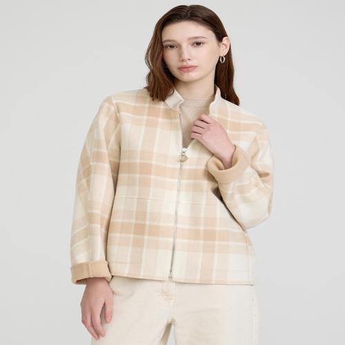 닥스 여성 [울캐시미어] 베이지 체크 울캐시미어혼방 긴팔 블루종 자켓 (DLJA5A101I2)