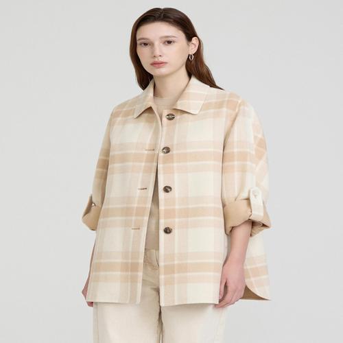 닥스 여성 [울캐시미어]베이지 체크 싱글 버튼 울캐시미어혼방 셔츠형 하프코트 (DLCO5A101I2)