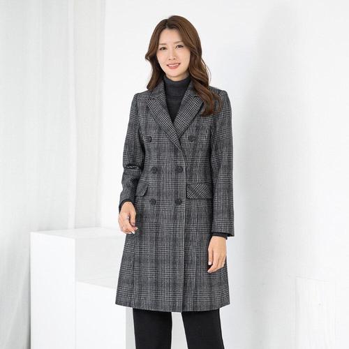 [모슬린]엄마옷 울모직 정장 체크 카라 더블 하프코트 511FGH021 마담/중년여성/빅사이즈/50대/60대