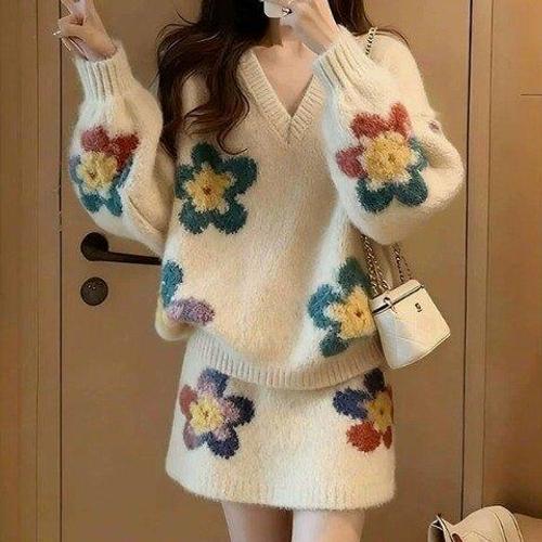 [아리엘스타일]플라워니트투피스 겨울투피스 러블리룩 베올랑니트투