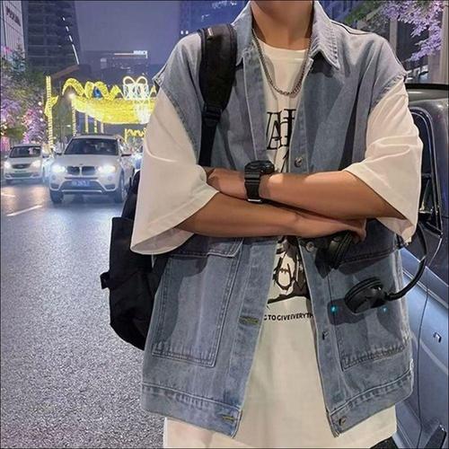 조끼 데님 청 오버핏 레이어드 블랙 연청 베스트 남자 WFLDIJ8