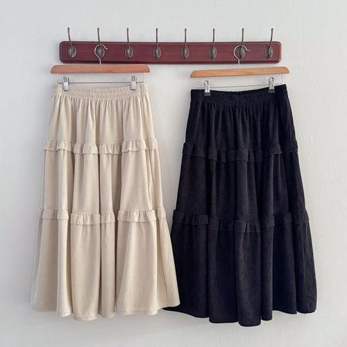 [다잇템][다잇템] 여성 골덴 프릴 큰사이즈 긴치마 데이트룩_23763998_588872