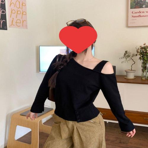 여성 2컬러 데이트룩 여리핏 언발 원오프숄더 니트 WFL9D24