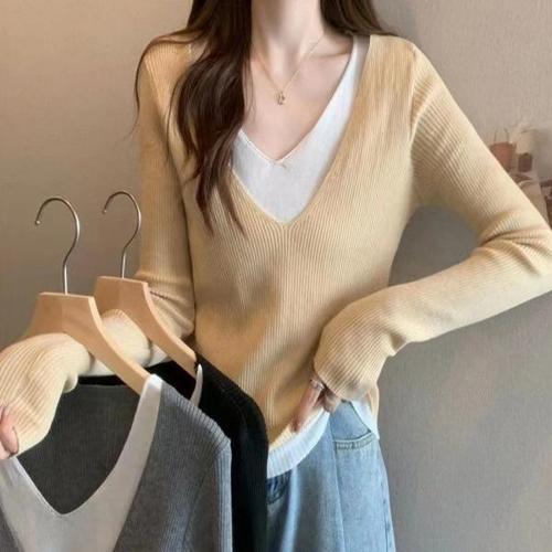 [엄지척]여성 데일리 페이크 투피스 골지티셔츠 니트티 긴팔티_19677488_667501