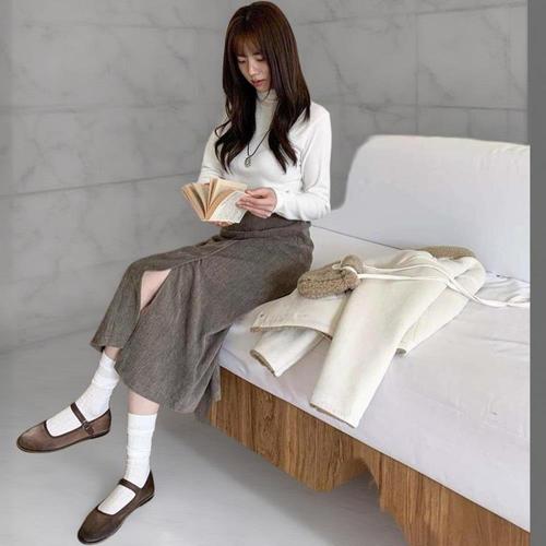 [다잇템][다잇템] 여성용 세무 슬릿 베이직 롱 치마 H라인_23410890_588872